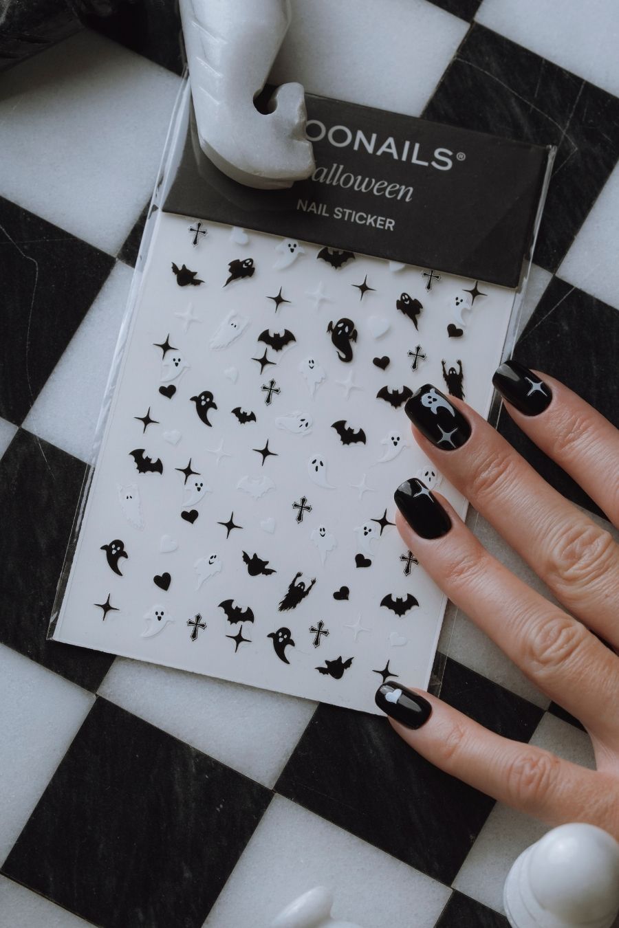 reinigingsdoekje. - Plakstickers of nagellijm aanbrengen – kies een methode: Met plakstickers blijft de manicure ongeveer 5-7 dagen zitten en de nagels kunnen gemakkelijk worden verwijderd en opnieuw worden gebruikt. Met nagellijm bereik je een houdbaarheid van maximaal 14 dagen voor een extra sterke hechting.