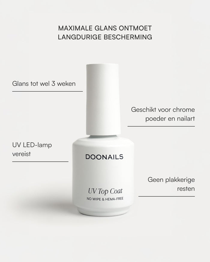 - UV-Top Coat voor extra bescherming en glans – zoals een coating in de nagelstudio.