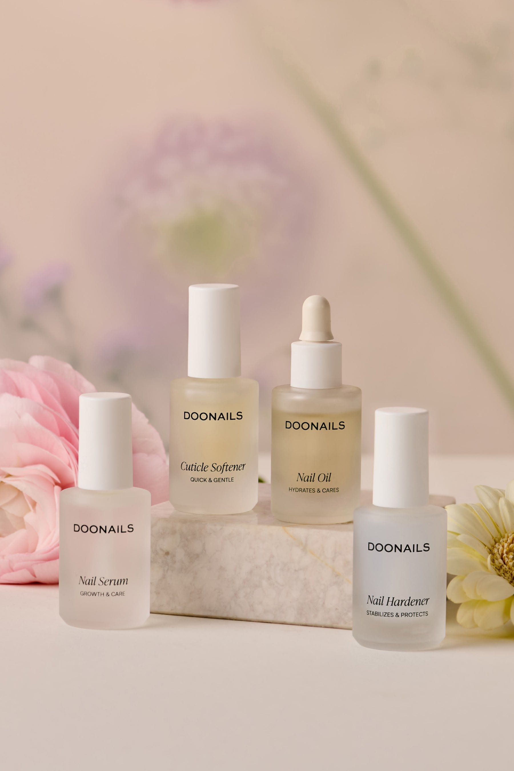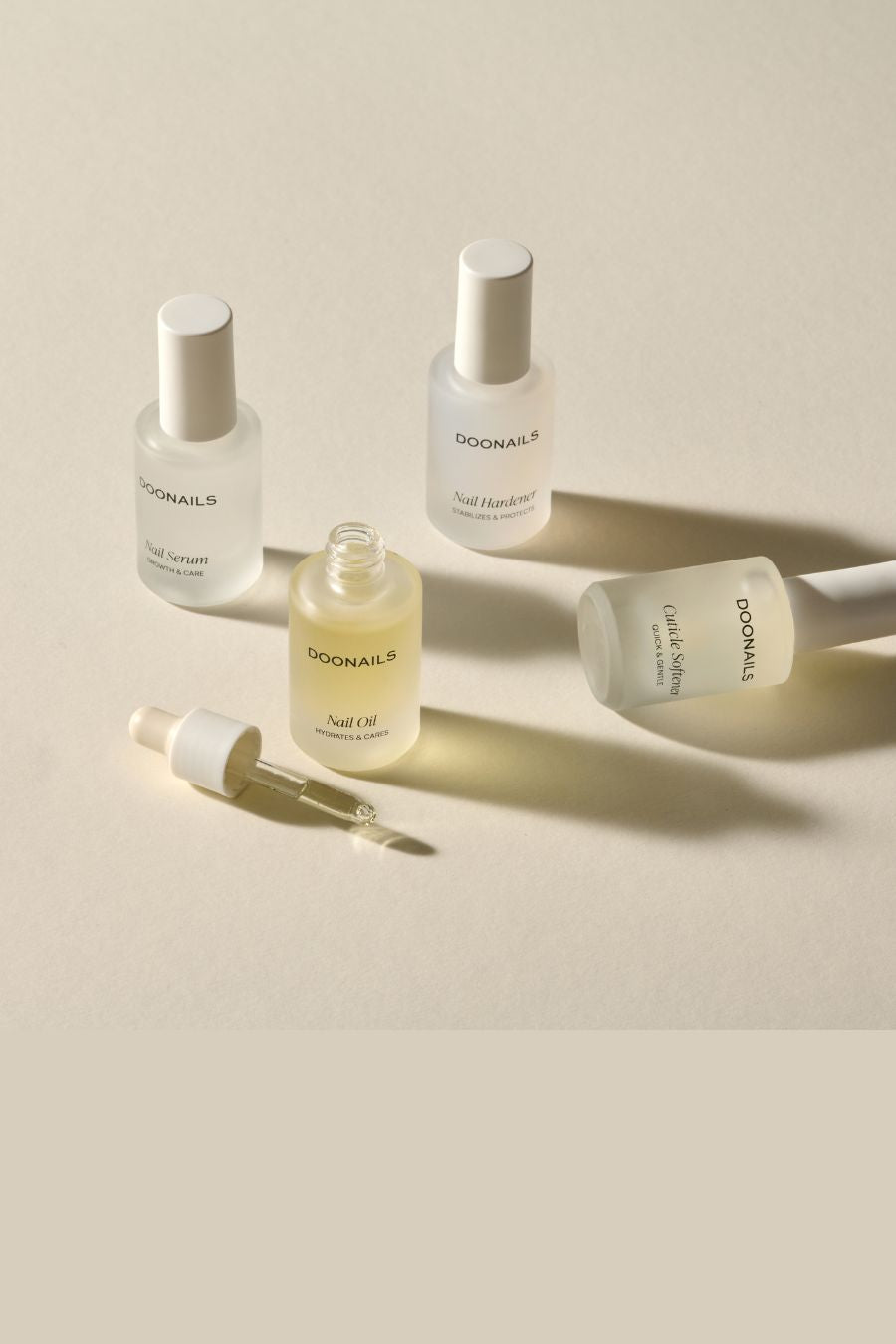 Met de Doonails Nagelverzorgingscollectie krijg je alles wat je nodig hebt voor professionele en gezonde nagelverzorging thuis. De hoogwaardige verzorgingsproducten zoals nagelserum, nagelolie, nagelriemverzachter en nagelverharder zijn speciaal ontwikkeld om breekbare nagels te versterken, de nagelriemen zacht te verzorgen en de natuurlijke nagelgroei te bevorderen.