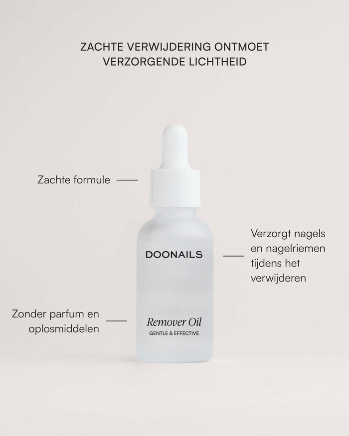 Als je hebt gekozen voor een sterkere grip met nagellijm , raden we je aan om onze speciale olie voor het verwijderen te gebruiken. Breng het aan op de randen van de nagel en laat het inwerken – zo lost de lijm op zonder sterk te trekken of agressieve chemicaliën. Dit is bijzonder zacht voor je natuurlijke nagels en zorgt ervoor dat je nagels gezond en verzorgd blijven – zelfs bij regelmatig dragen.