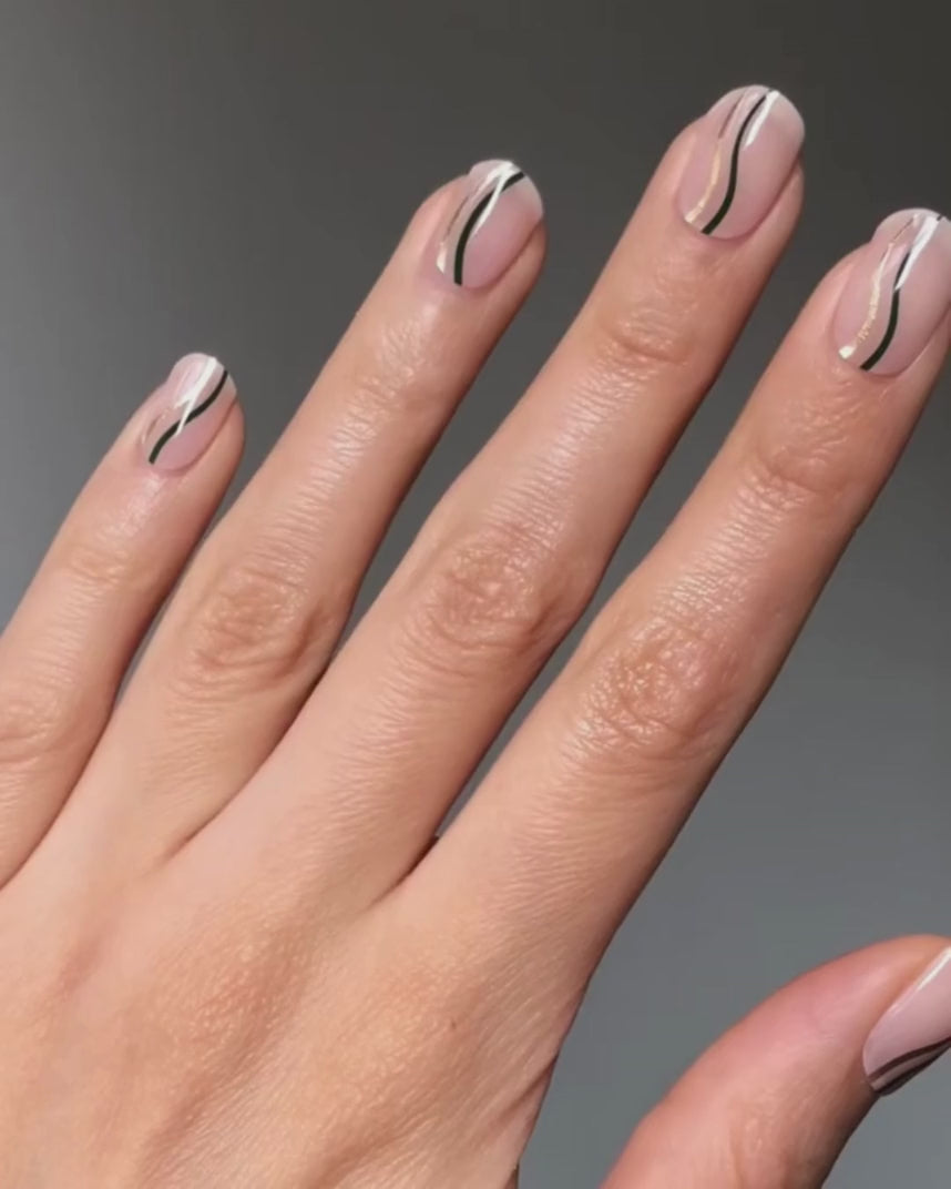 Het subtiele swirl-design combineert feestelijk goud en rijk groen, geïnspireerd door dennentakken en winterse decoraties. De sierlijke lijnen stralen elegantie en natuurlijkheid uit. Perfect voor chique winterlooks met een vleugje feestelijkheid.
